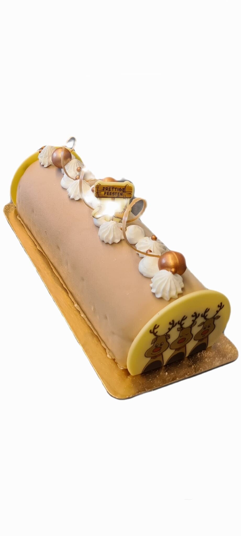 Heerlijke kerststronk waarmee je je gasten lekker kan verwennen bij de eindejaarsfeesten. We maken deze lekkernij met vanille- en Kinder Bueno-ijs en werken deze af met een ganache van praliné, waarin je de typische Crepito Kinder Buenosmaak in zal herkennen.