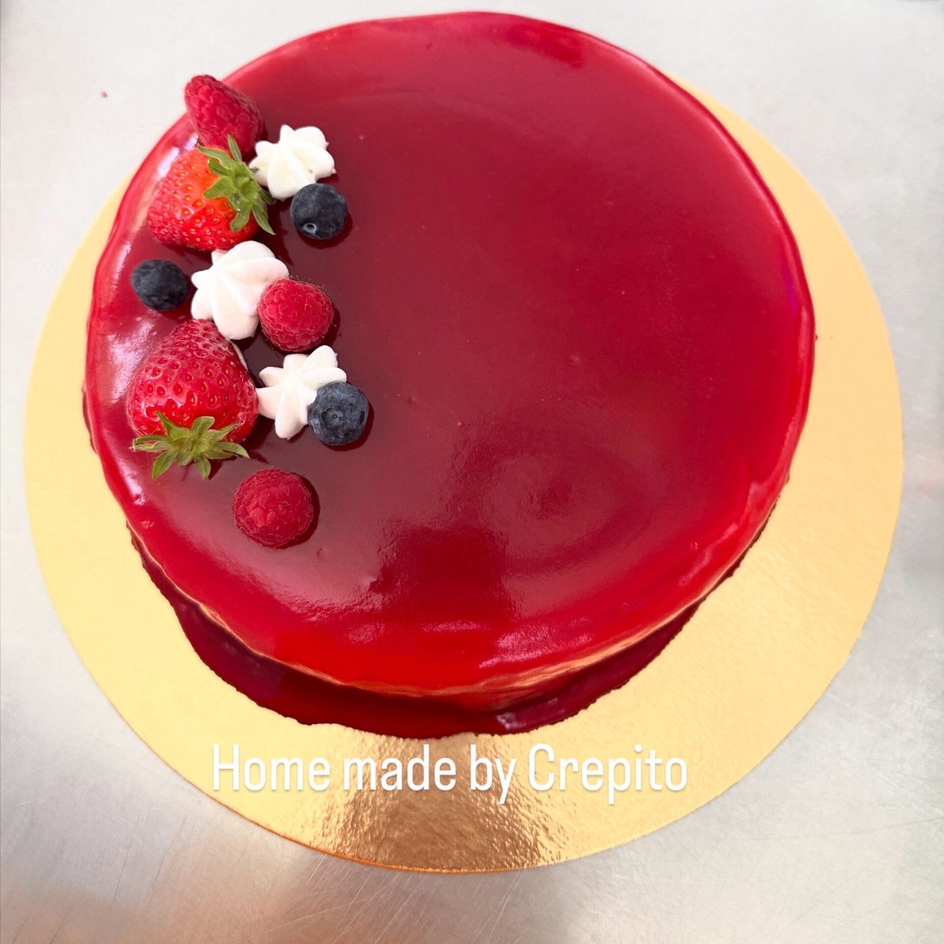 Heerlijke ijstaart met een smaak naar keuze, afgewerkt met een stijlvolle aardbeispiegel.